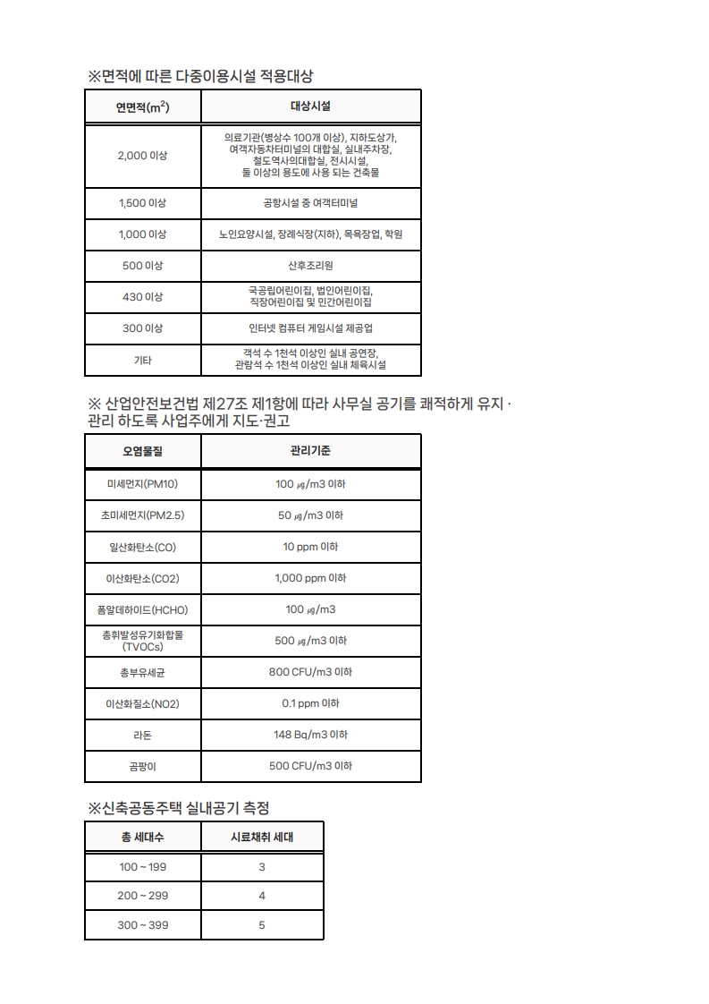 실내공기질 측정 대상 및 항목 등을 공유드리오니 내용 확인 바랍니다.
