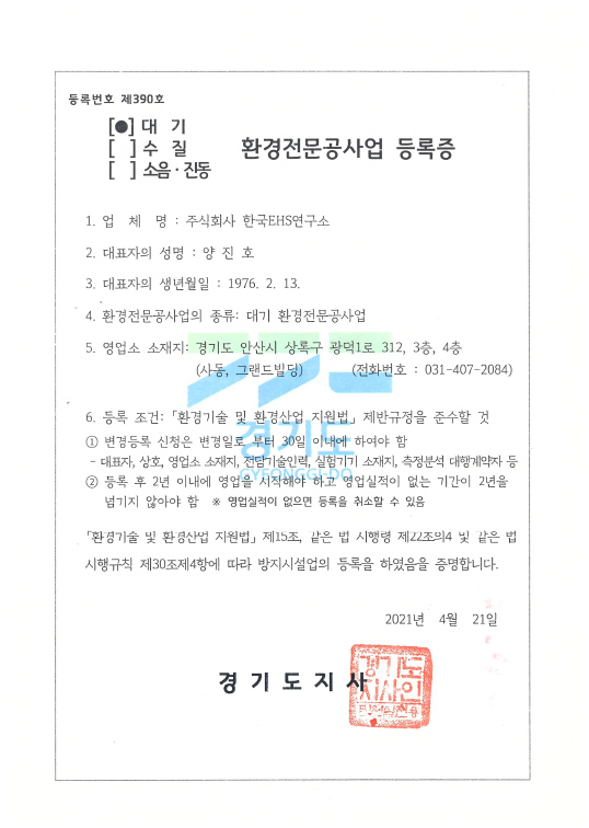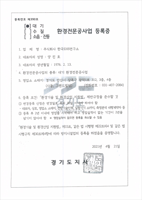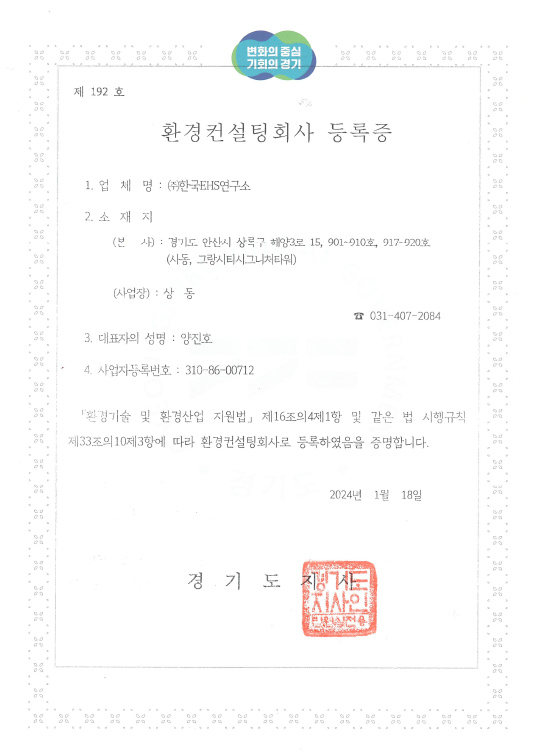 환경컨설팅회사등록증