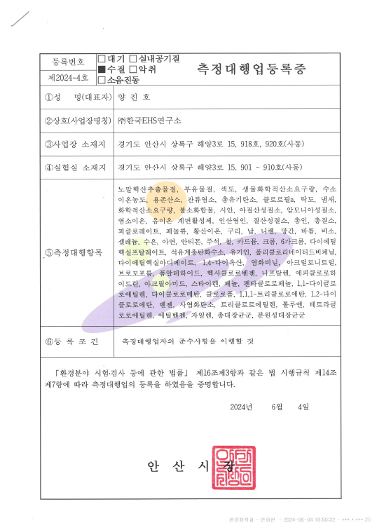 수질측정대행업등록증