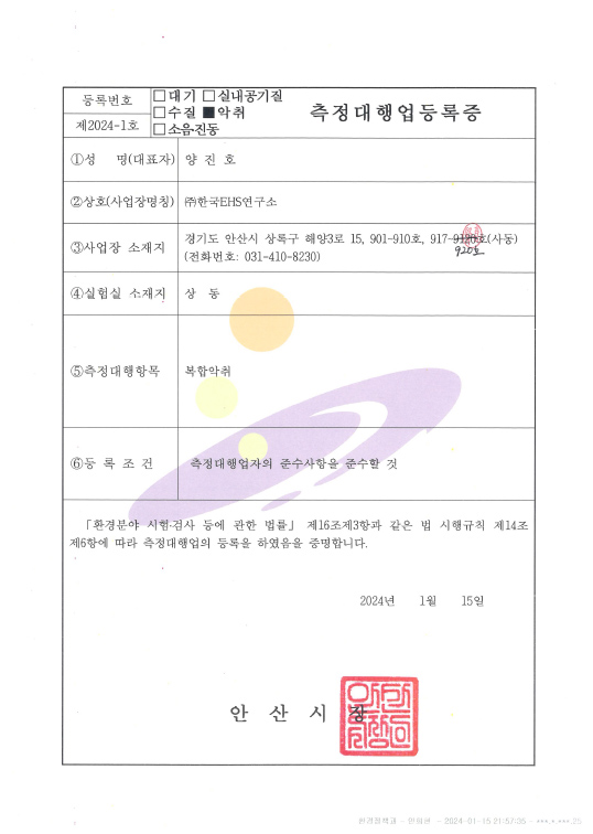 악취측정대행업등록증