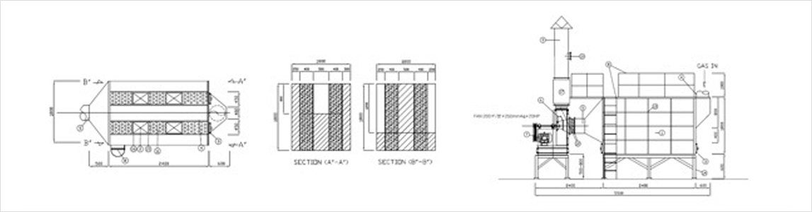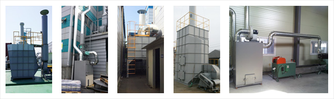 각종 유기성물질 및 악취물질이 함유된 배출가스가 활성탄의 다공질 표면에 물리.화학적으로 흡수,흡착하여 원리로 오염물질을 제거하는 시설로써, 흡착제인 활성탄이 널리 사용된다. 배출가스가 송풍기에 의하여 후드 및 닥트를 경유하여 활성탄층(흡착영역)을 통과하면서 가스상의 악취물질을 제거한 후, 정화된 공기는 배출구(STACK)로 배출한다. 활성탄에 흡착된 오염물질은 활성탄을 주기적으로 교체하여 장치의 제거효율을 유지하여 준다