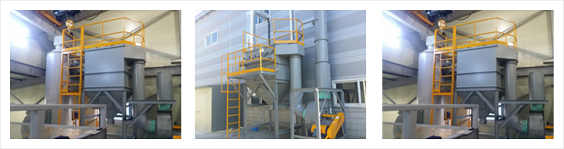 분진이 함유된 배출가스를 송풍기에 의하여 후드 및 닥트를 경유하여 BAG 형태의 여과재가 설치된 장치(BAG FILTER)로 분진이 유입되어 여과재 표면에 부착 포집되는 장치이다.