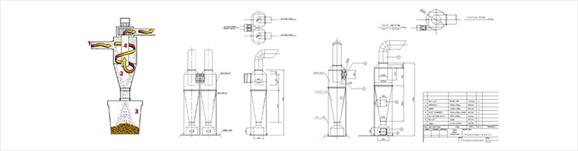 먼지가 함유된 배출가스를 송풍기에 의하여 후드 및 닥트를 경유하여 CON 형태의 장치(CYCLONE)로 분진이 유입되어 내부에서 원심력에 의해 입자성물질을 제거하는 장치이다.